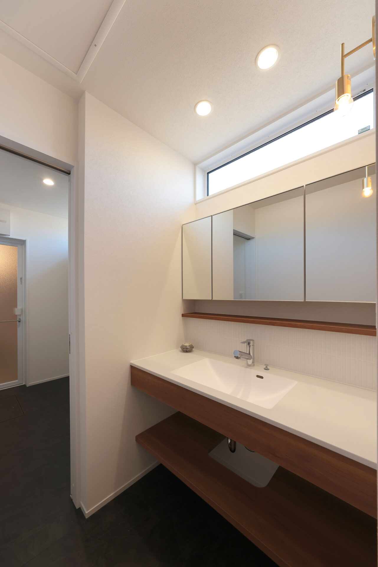 洗面・脱衣室・浴室を一直線に配置し、「行ったり来たり」の負担を少なくしました。